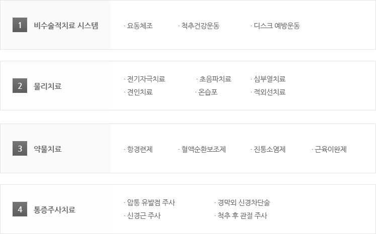 - 눌리고 있는 신경에 직접 신경치료약물을 넣어 신경의 염증을 가라앉히고 근육을 이완시키며 혈액순환을 원활하게 해줌으로서 90% 이상의 호전을 볼 수 있습니다.