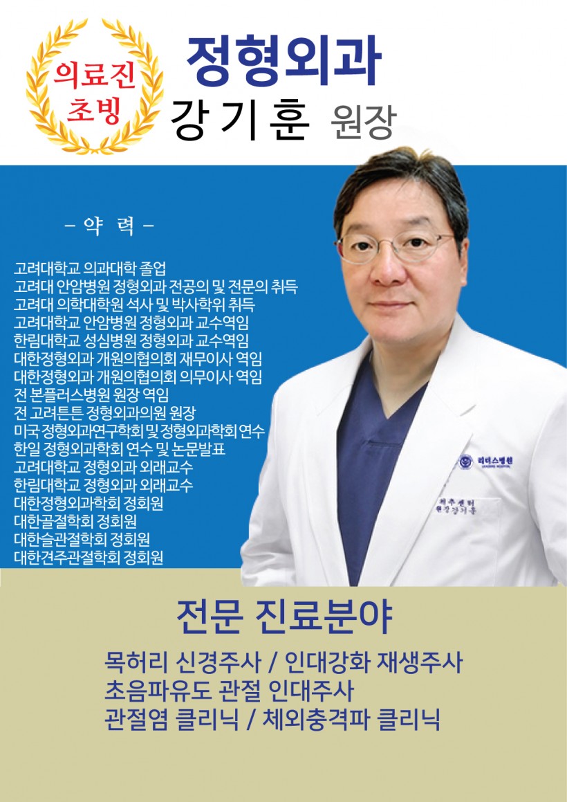 이번 리더스병원에서는 풍부한 진료경험을 자랑하는 정형외과 전문의 강기훈 원장을 초빙하였습니다.